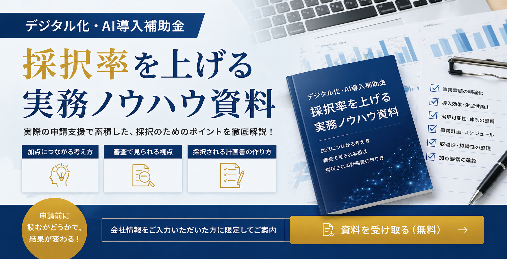当社は、デジタル化・AI導入補助金(旧:IT導入補助金)の支援事業者として採択されています。